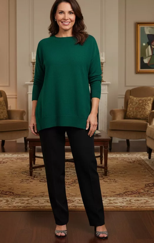 Kellemes, selymes anyagú, gumis derekú, alkalmi nadrág. Csípőnél 1-2 cm-t enged.