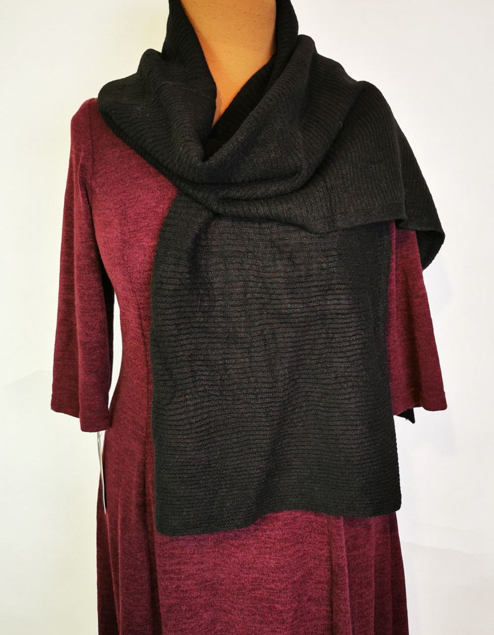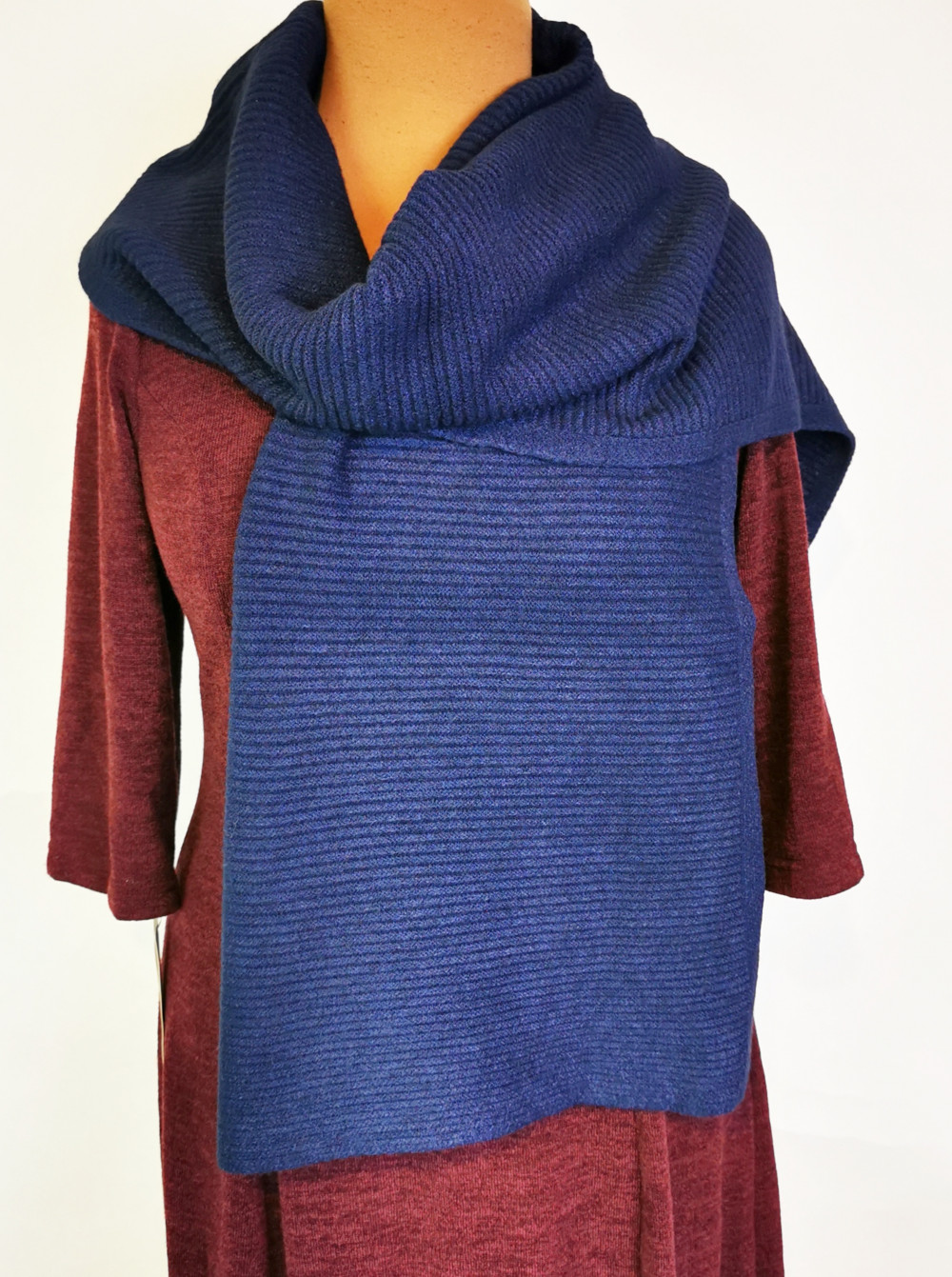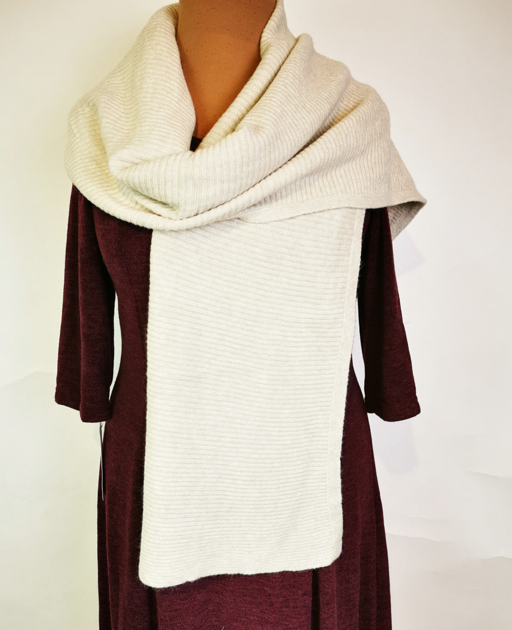 Nagy méretű, puha, bordázott, gépi kötött anyagú sál.