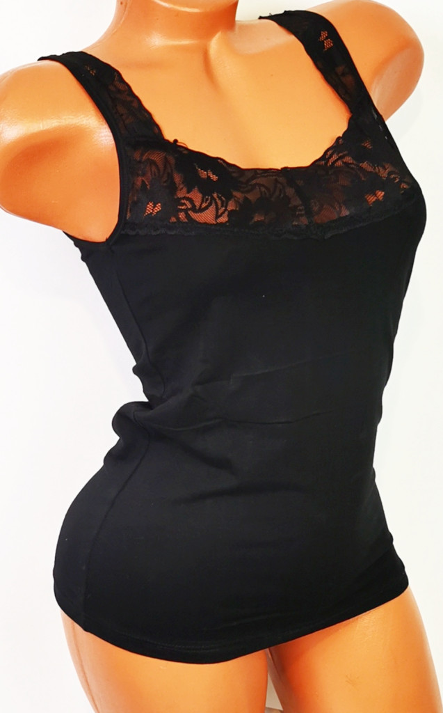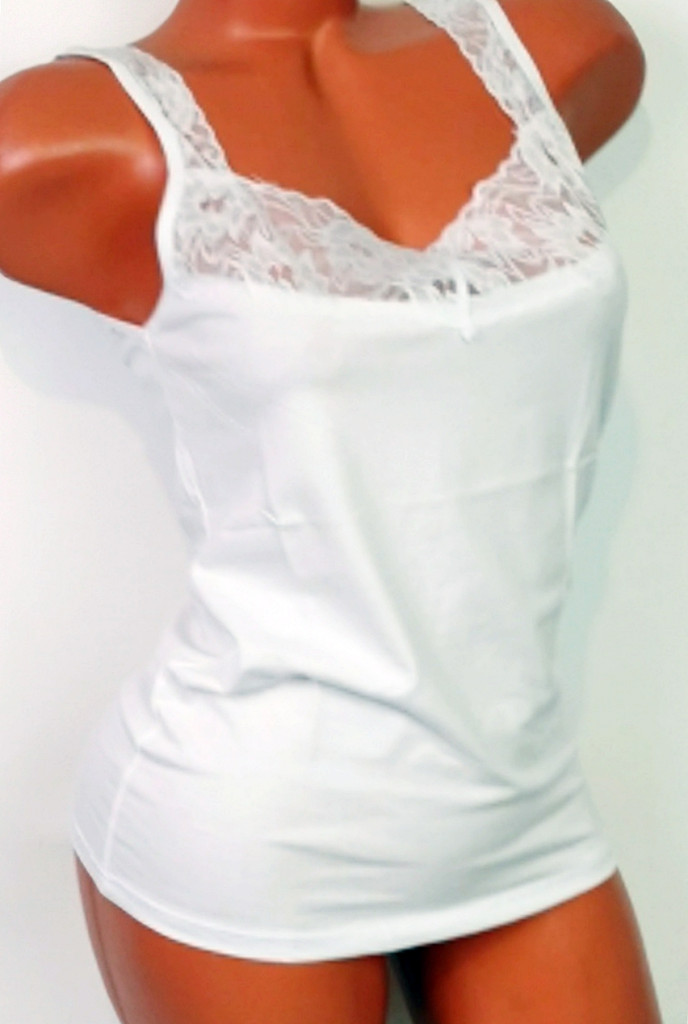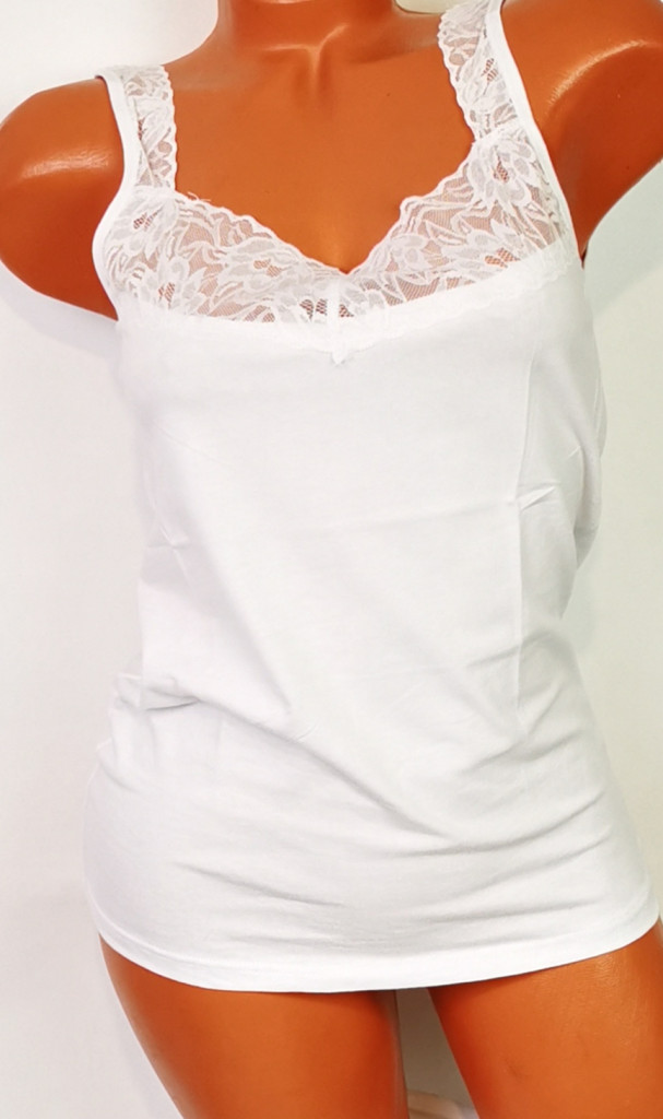 Pamut anyagú, csipke díszítéses atléta. 4-5cm-t enged.